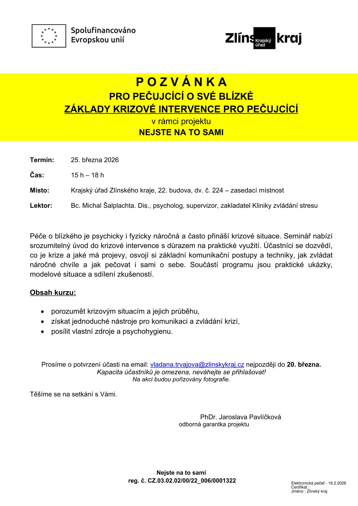 Pozvánka pro pečující o své blízké - plakát